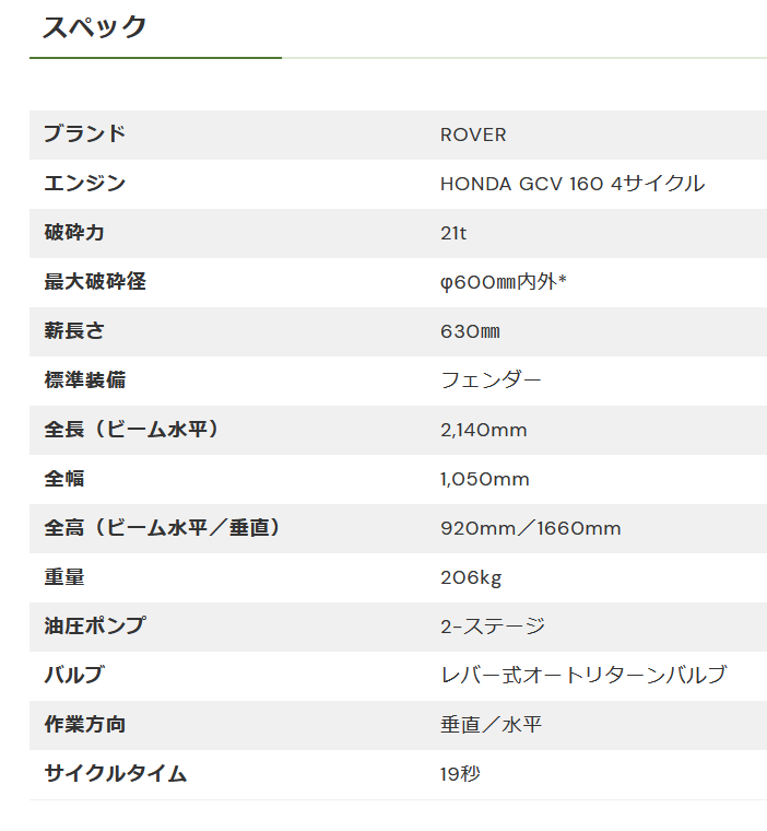 HONDAエンジン搭載で安心、欧米で最も使われる21t薪割り機