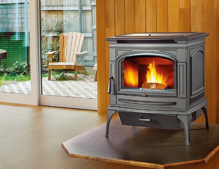ベルギー製の美しい鋳鉄製パネルがペレットストーブです。