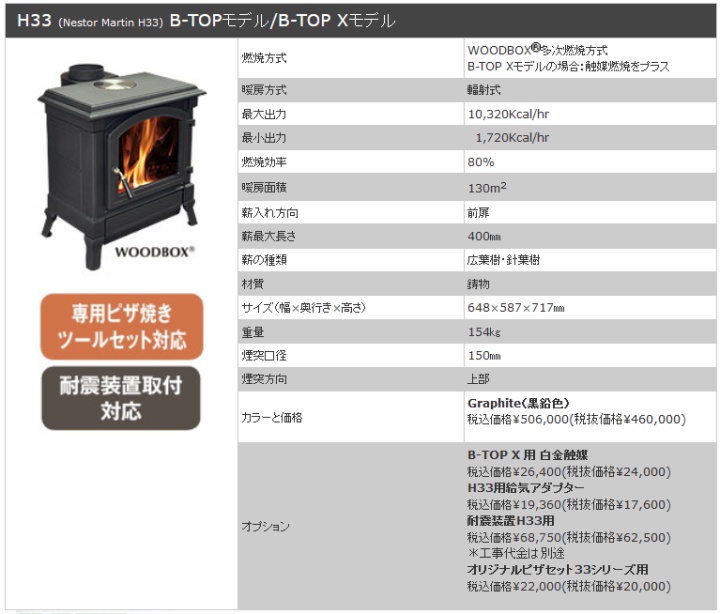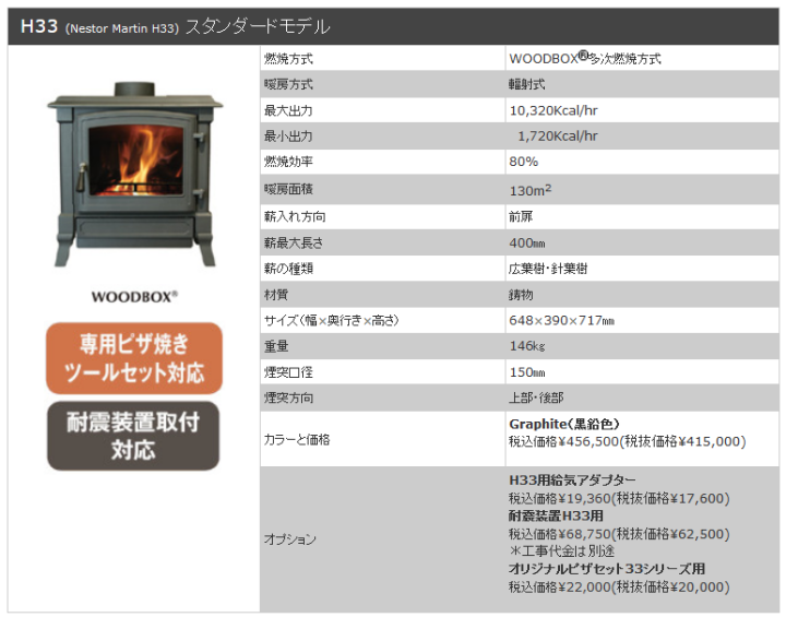 S33と同じWOODBOX®多次燃焼方式をベースにし、効率よい燃焼性能を誇ります。